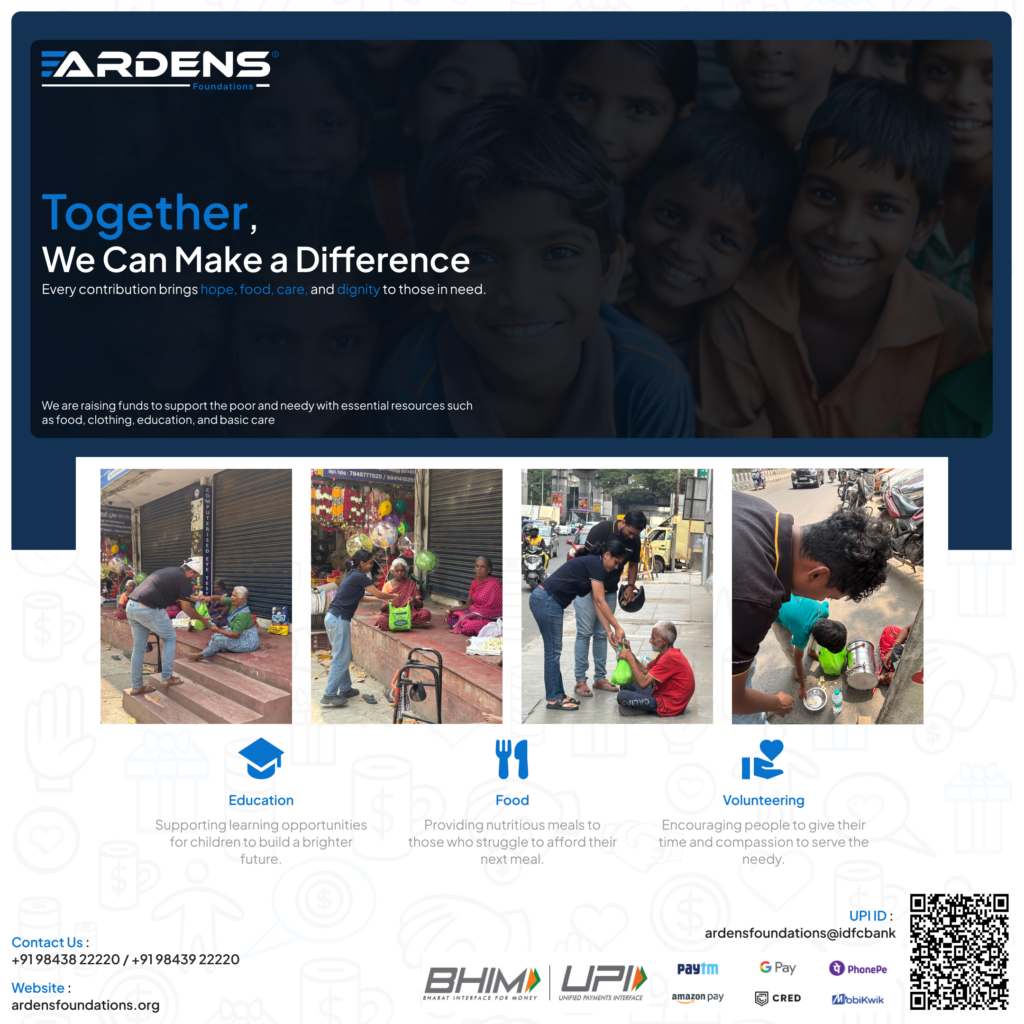 Every contribution will directly support food, essential care, and basic needs for the underprivileged.